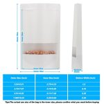 【Удобный дизайн】U-образный вырез в верхней части позволяет покупателям легко его оторвать; Каждый пакет имеет одностороннее матово-прозрачное окно, обеспечивающее прозрачность внутренней упаковки; Конструкция застежки-молнии проста в использовании и полностью герметична, может быть повторно запечатана с помощью запечатывающей машины; Дно пакета можно расширить, и пакет можно поставить вертикально для удобства хранения.
